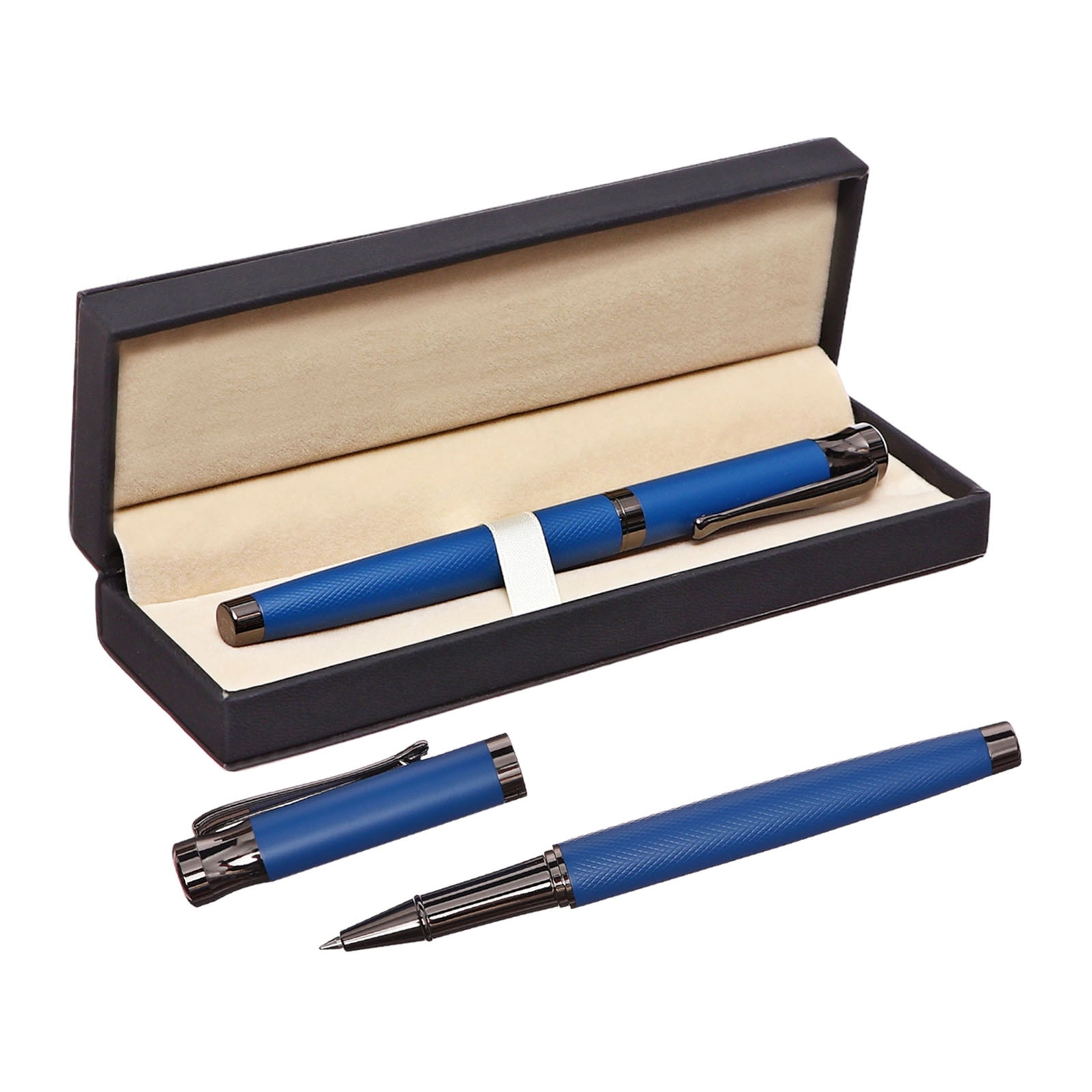 Ручка подарочная роллер в кожзам футляре Офис корпус синий 10562186