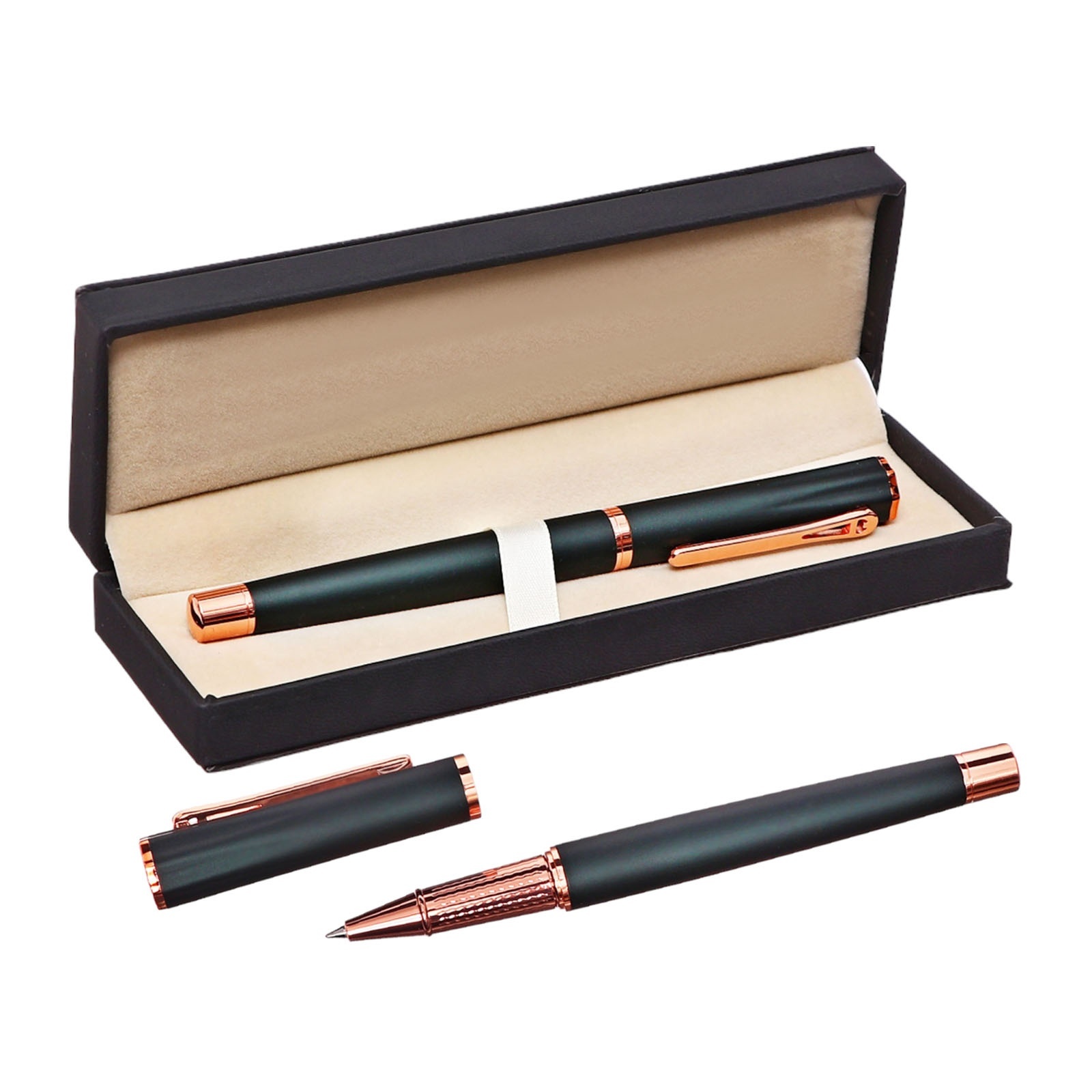 Ручка подарочная роллер в кожзам футляре Софтач корпус зеленый/медь 10562181