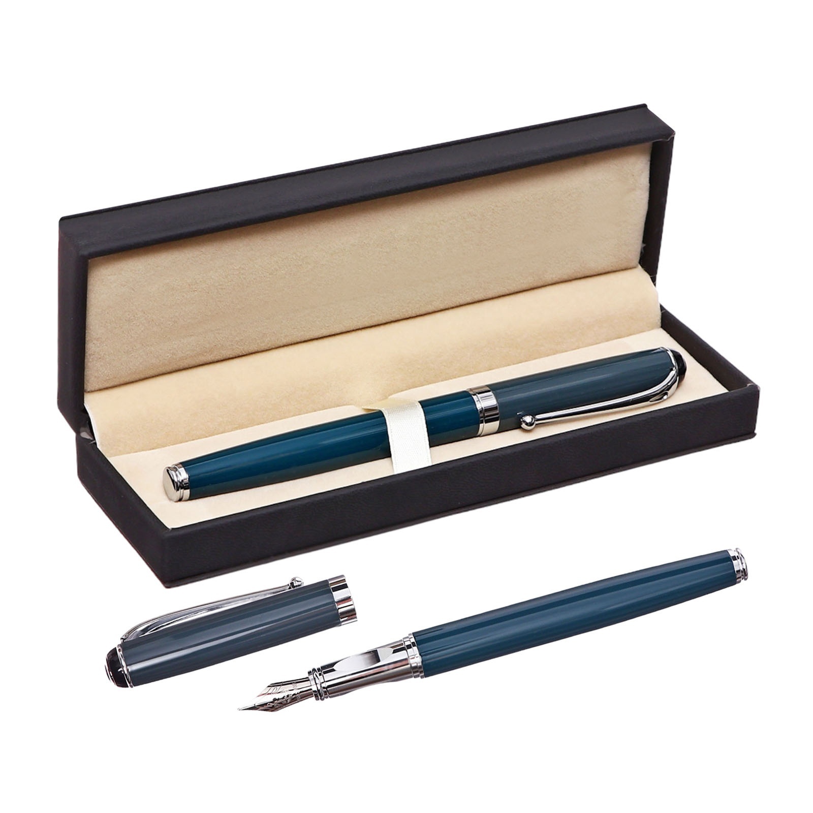 Ручка подарочная перьевая в кожзам футляре Классика корпус синий/серебро 10562192