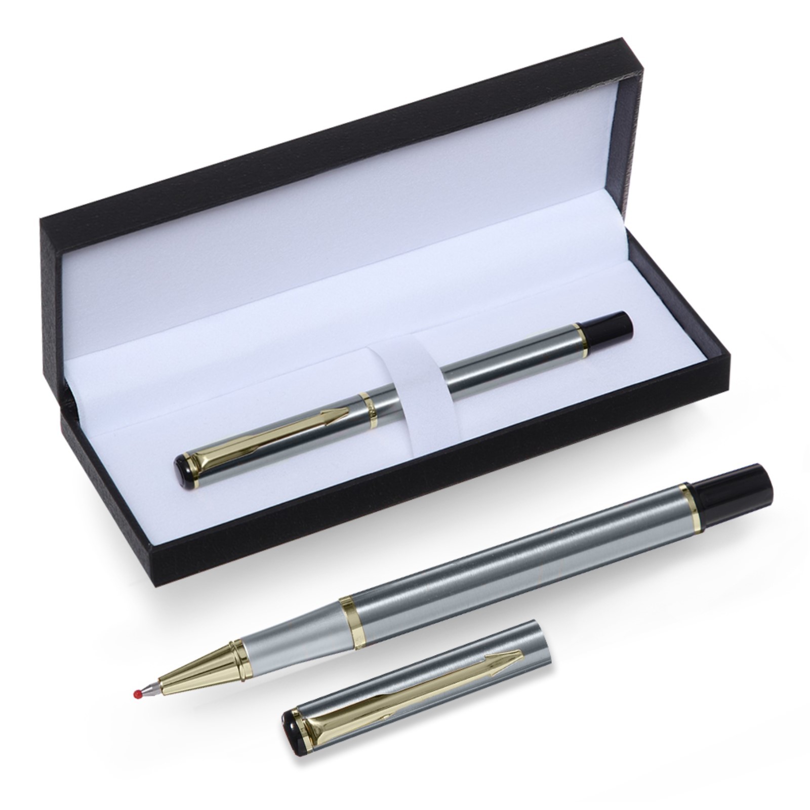 Ручка подарочная роллер в кожзам футляре Классика корпус серый/серебро 10562193
