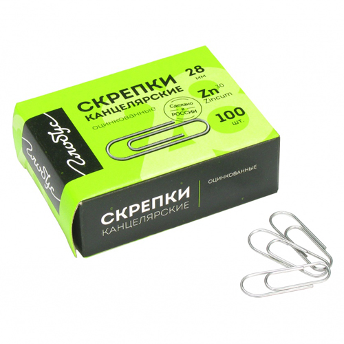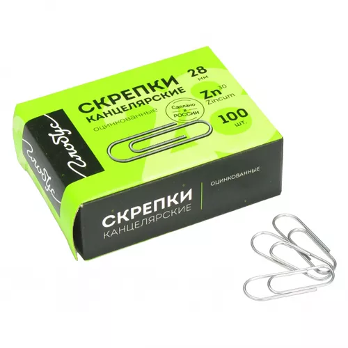 Скрепки " Глобус " 28мм оцинкованные 100шт, картонная упаковка