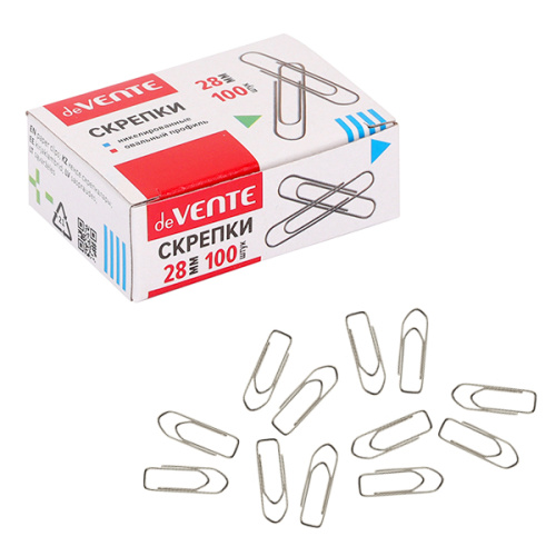Скрепки " deVente " 28мм никелированные 100шт картонная коробка
