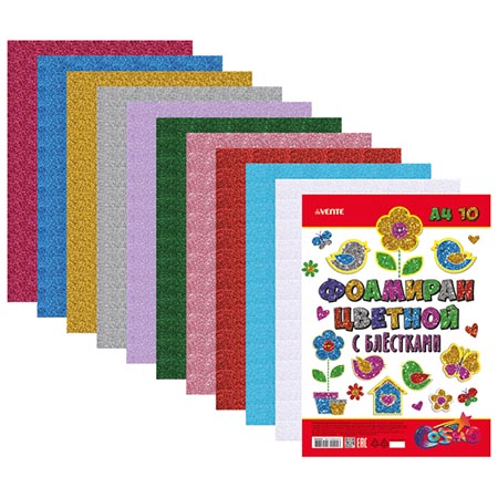 Фоамиран " deVente " А4 10л 10цв 2мм с блестками, пластиковый пакет, европодвес