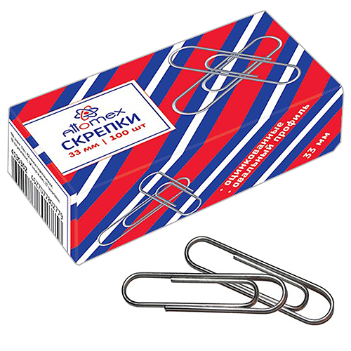Скрепки " Attomex " 33мм оцинкованные 100шт картонная коробка