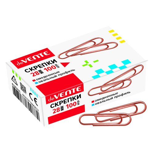 Скрепки " deVente " 28мм омедненные 100шт картонная коробка