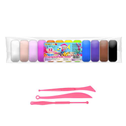 Воздушный пластилин " KWELT " 12цв, 90гр, инструменты для лепки, полиэтиленовая упаковка