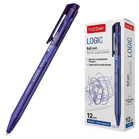 Ручка шариковая автоматическая " Hatber " Logic синяя 0,7мм, трехгранный корпус, чернила на масляной основе, тонированный корпус, картонная упаковка