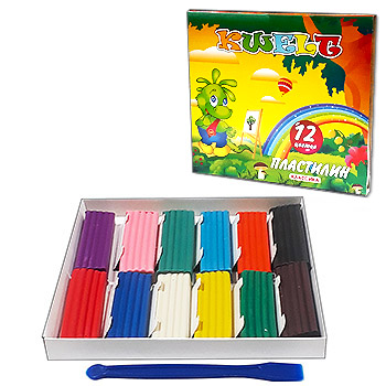 Пластилин " KWELT " Классический 12цв 240г со стеком, картонная упаковка