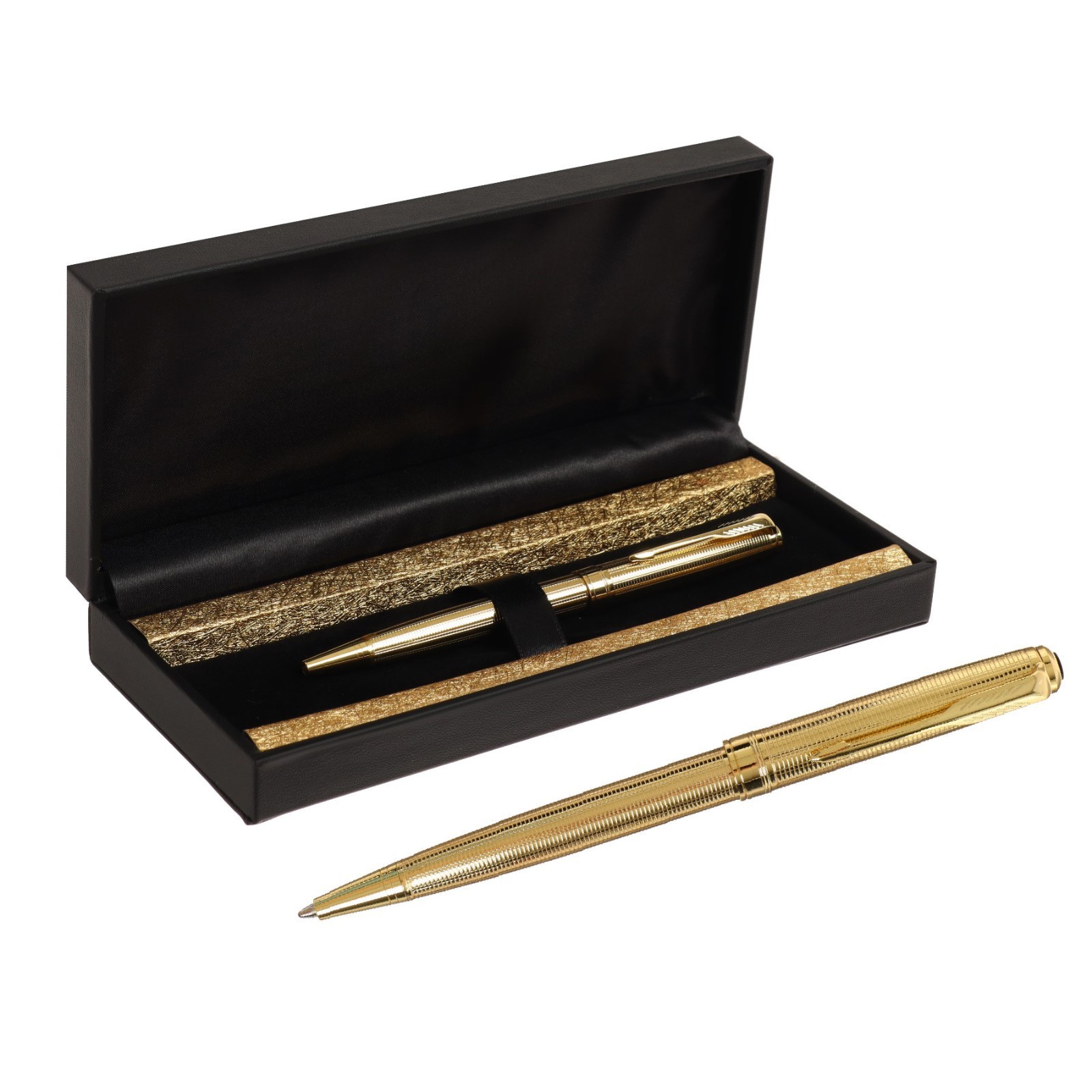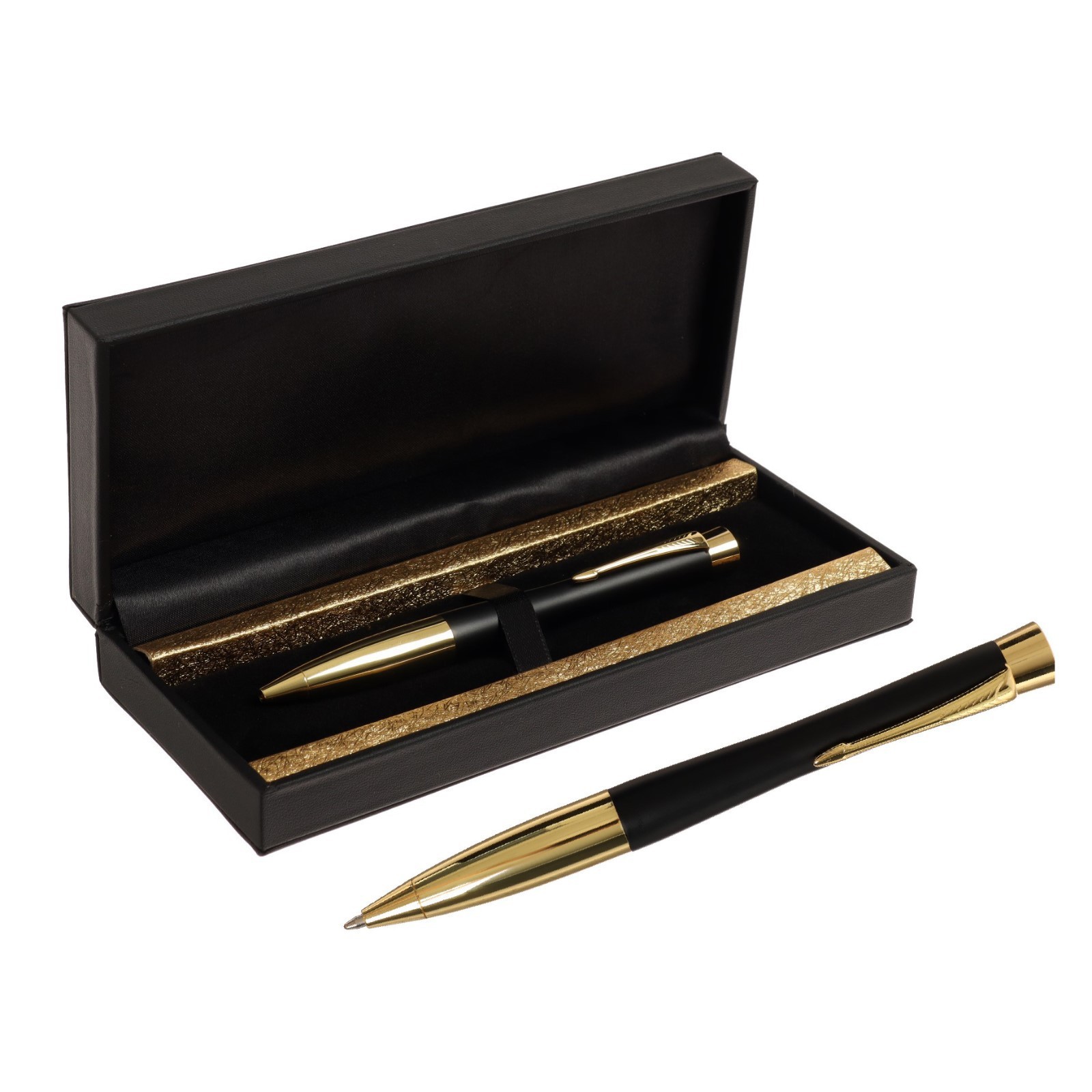 Ручка подарочная шариковая в кожзам футляре поворотная Фаворит корпус черно-золотой 131977