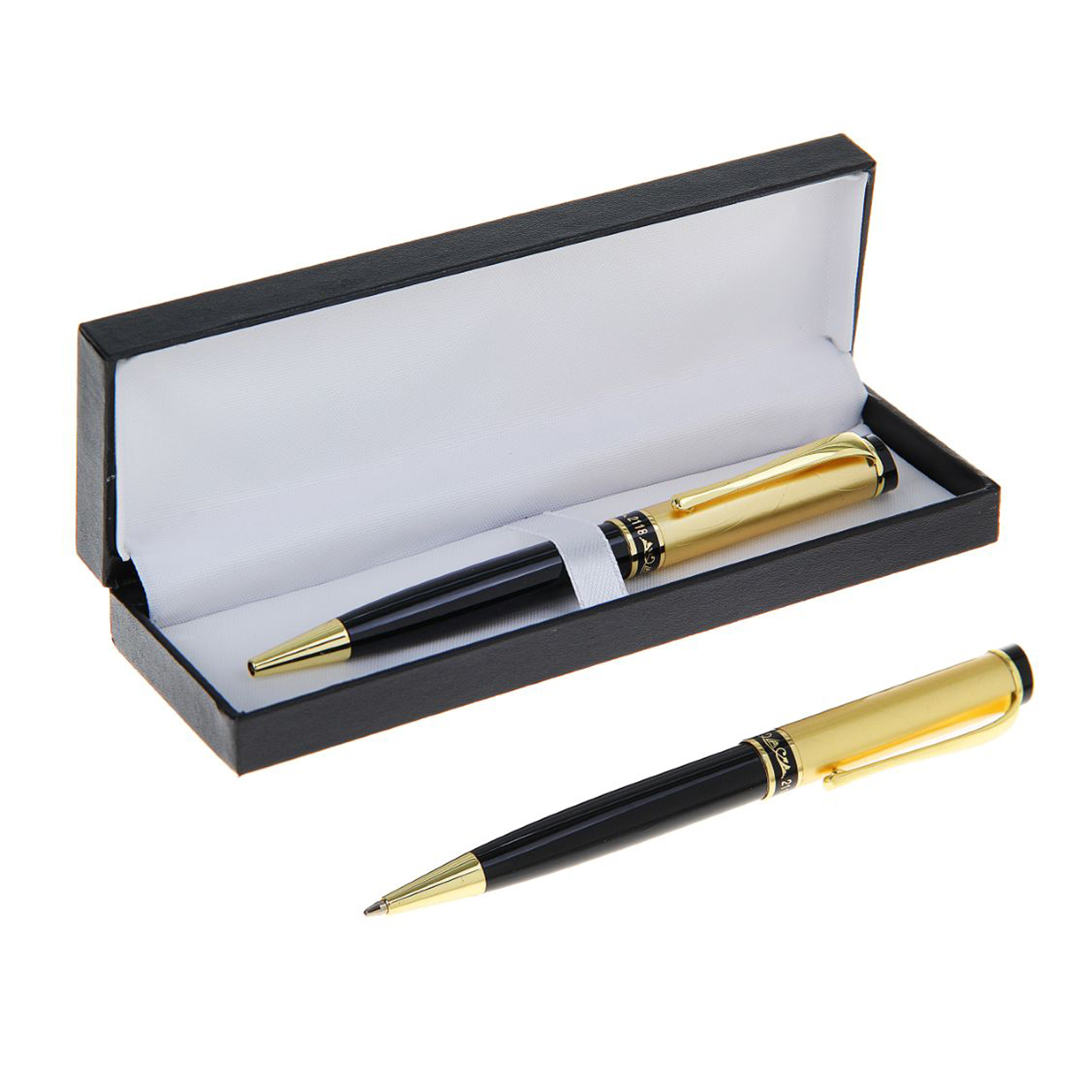 Ручка подарочная шариковая в кожзам футляре поворотная ПБ U, корпус черный с золотом 9129076