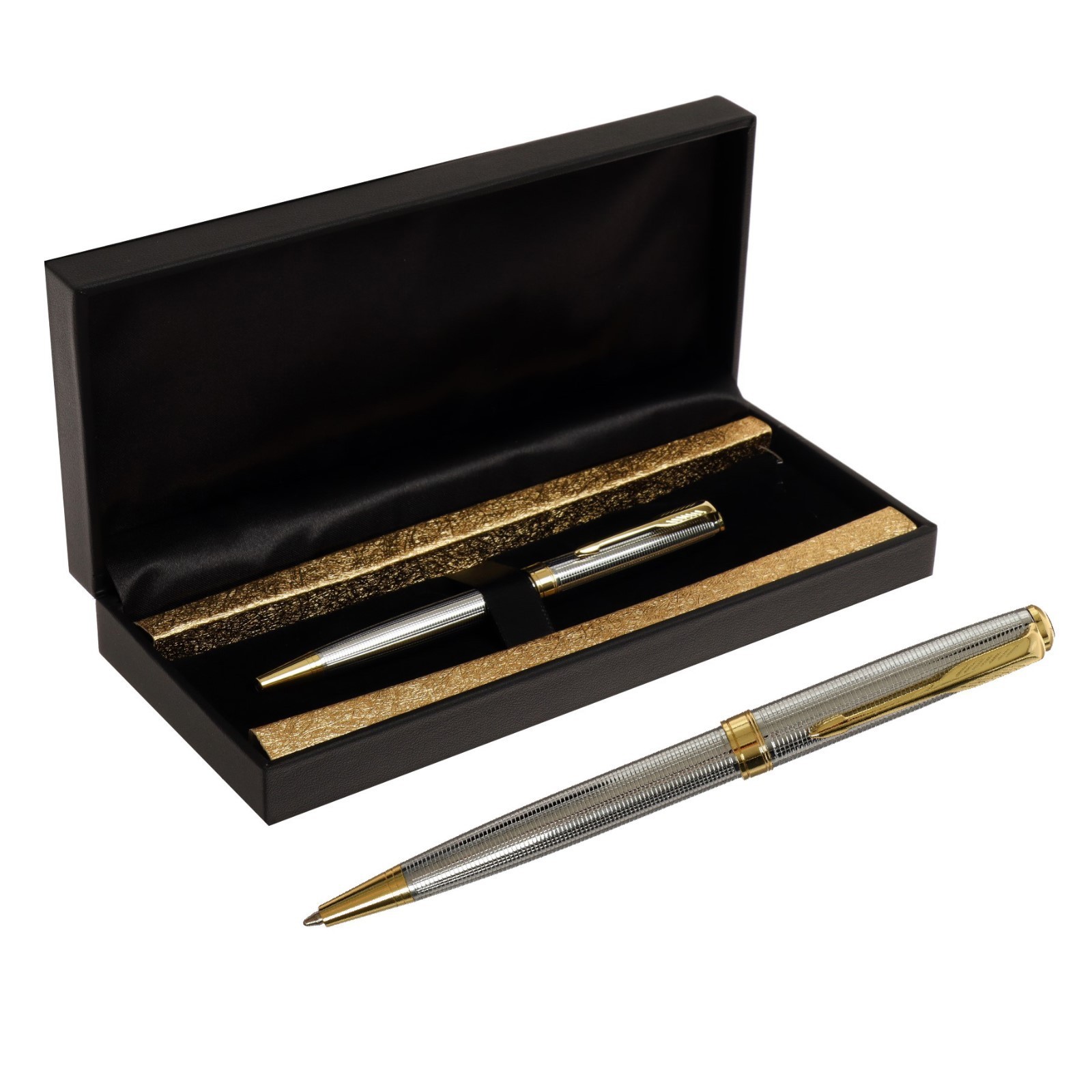 Ручка подарочная шариковая в кожзам футляре поворотная Гравюра корпус серебяно-золотистый 131997