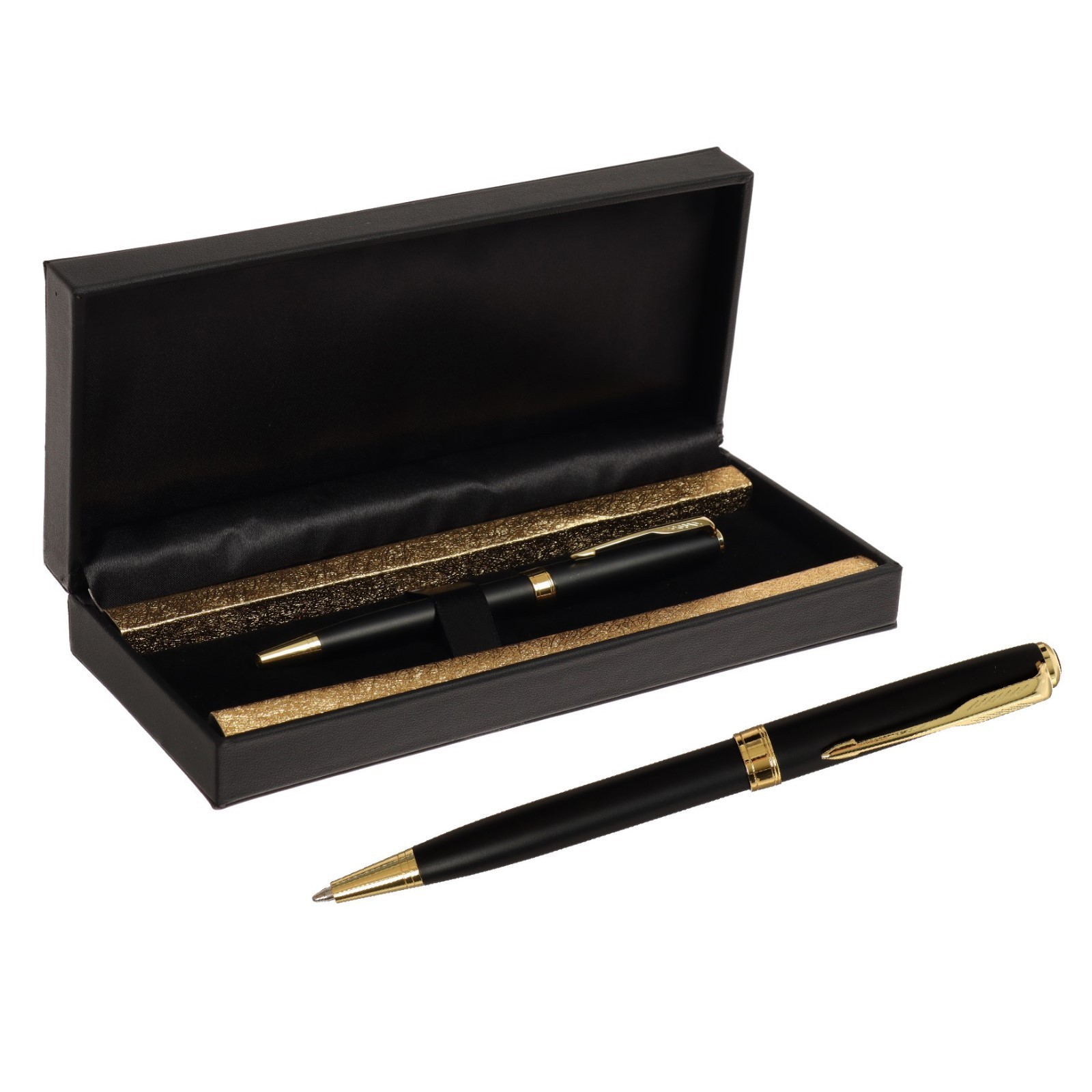 Ручка подарочная шариковая в кожзам футляре поворотная ПБ S, корпус черный/золото 9129088