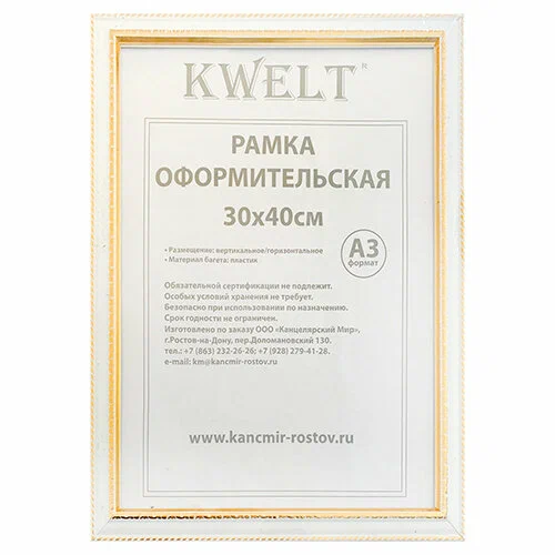 Фоторамка " KWELT " пластиковая 30*40см серия 7 белая, стекло, ширина багета - 28мм, золото