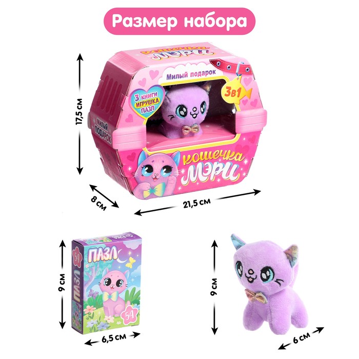 Набор 3 в1 «Кошечка Мэри»: 3 книги, пазл, мягкая игрушка