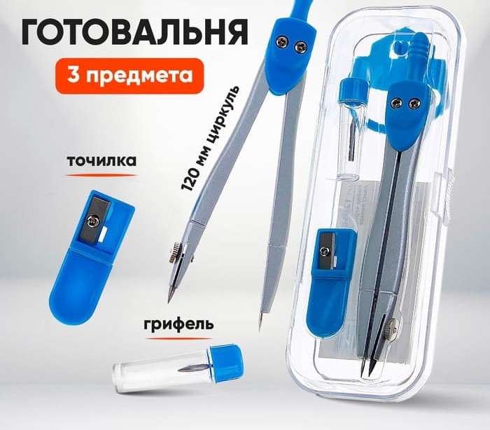 Готовальня 3пред (115мм циркуль,грифель,точилка) в пластик пенале CALLIGRATA 1269053