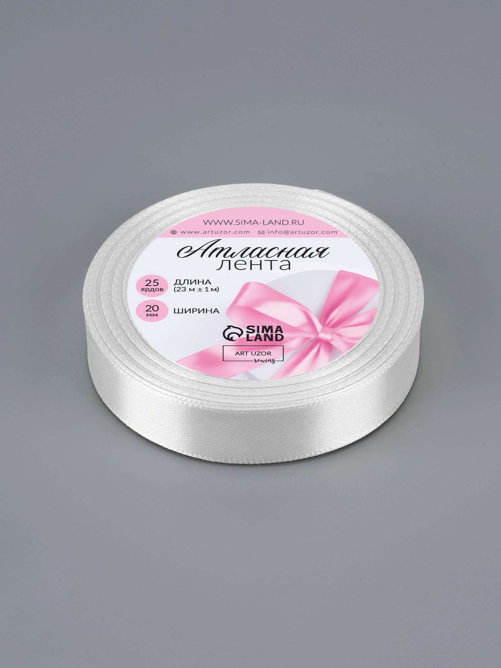Лента атласная №01 20мм*25±1ярд(23м±1м) белый АУ 1961200