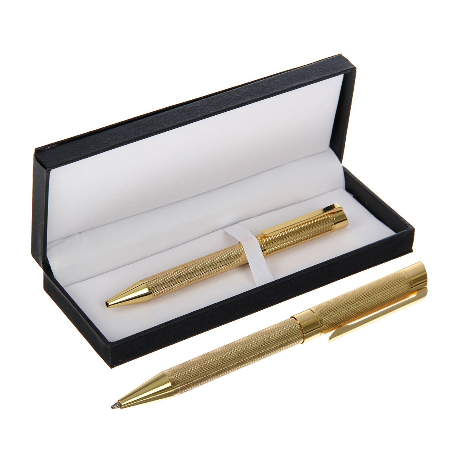 Ручка подарочная шариковая в кожзам футляре поворотная VIP корпус золотой 2415298