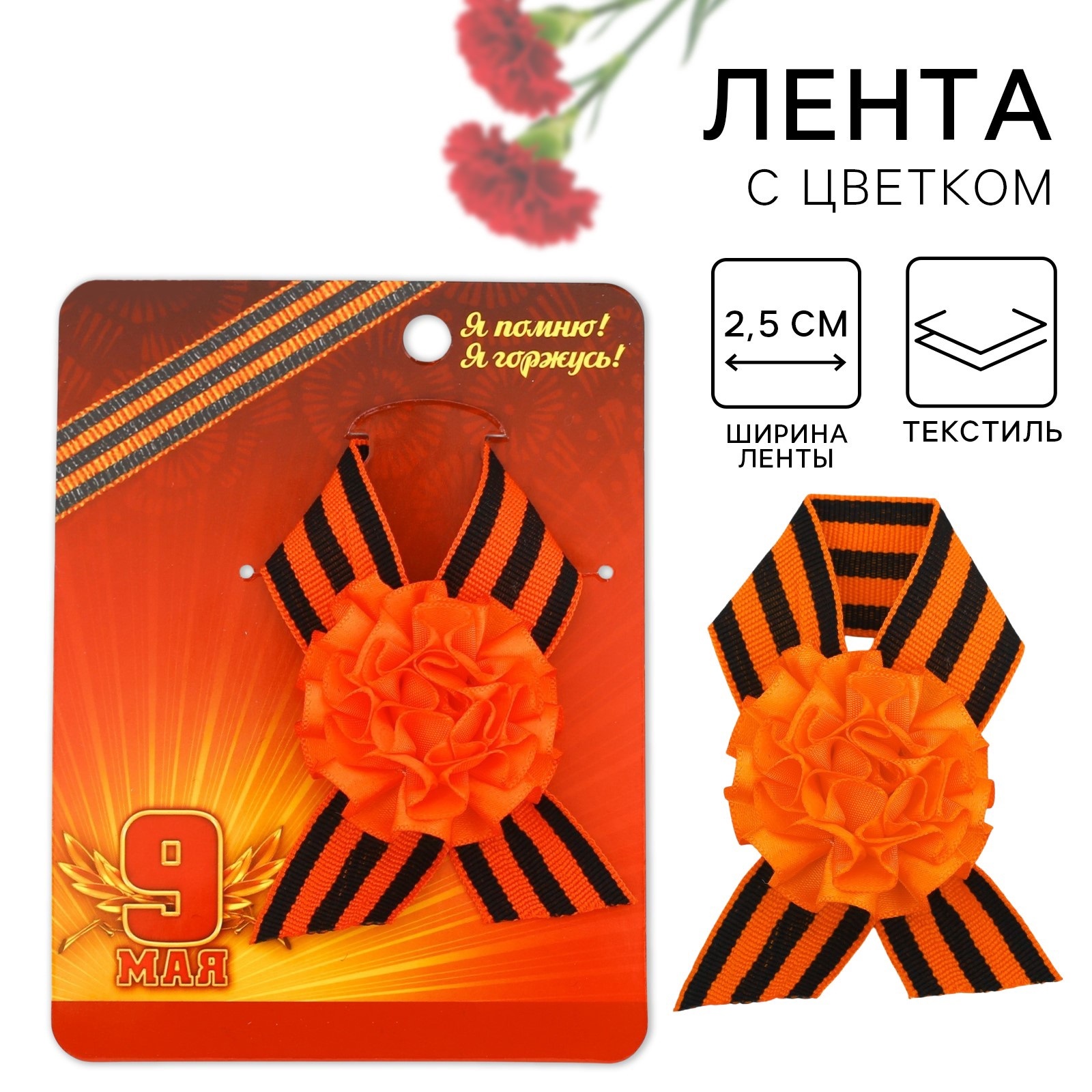 Лента с оранжевым цветком "9 Мая", 10 х 12 см 2676927