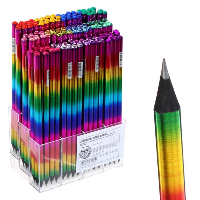 Карандаш ч/г НВ корпус радуга голография заточенный со стразой 2881986