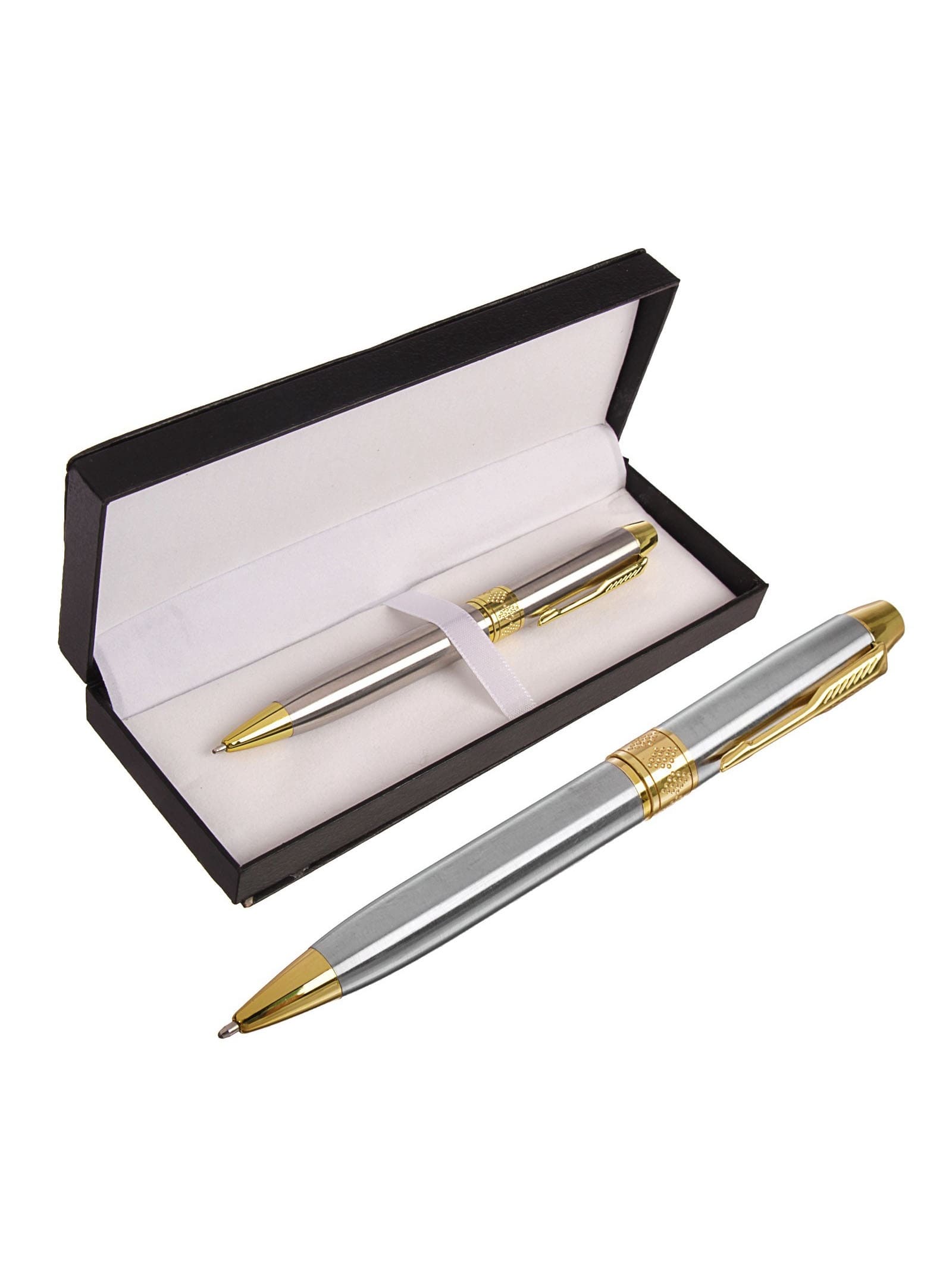 Ручка подарочная шариковая в кожзам футляре поворотная Стиль корпус серебристо-золотистый 3590834