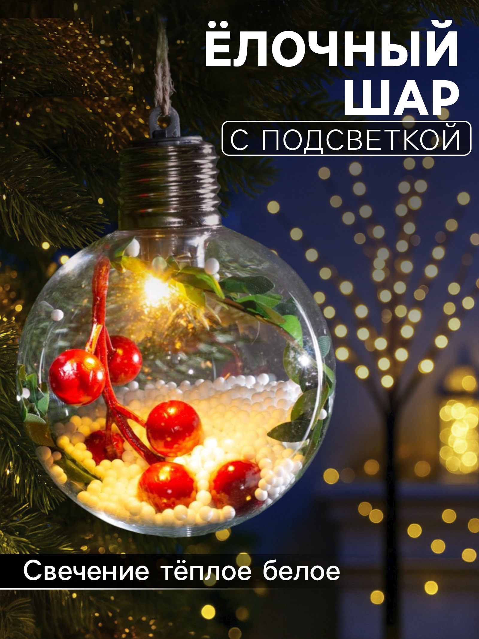 Елочный шар "Ягоды", 1 LED, от батареек, Т/БЕЛЫЙ 4357252