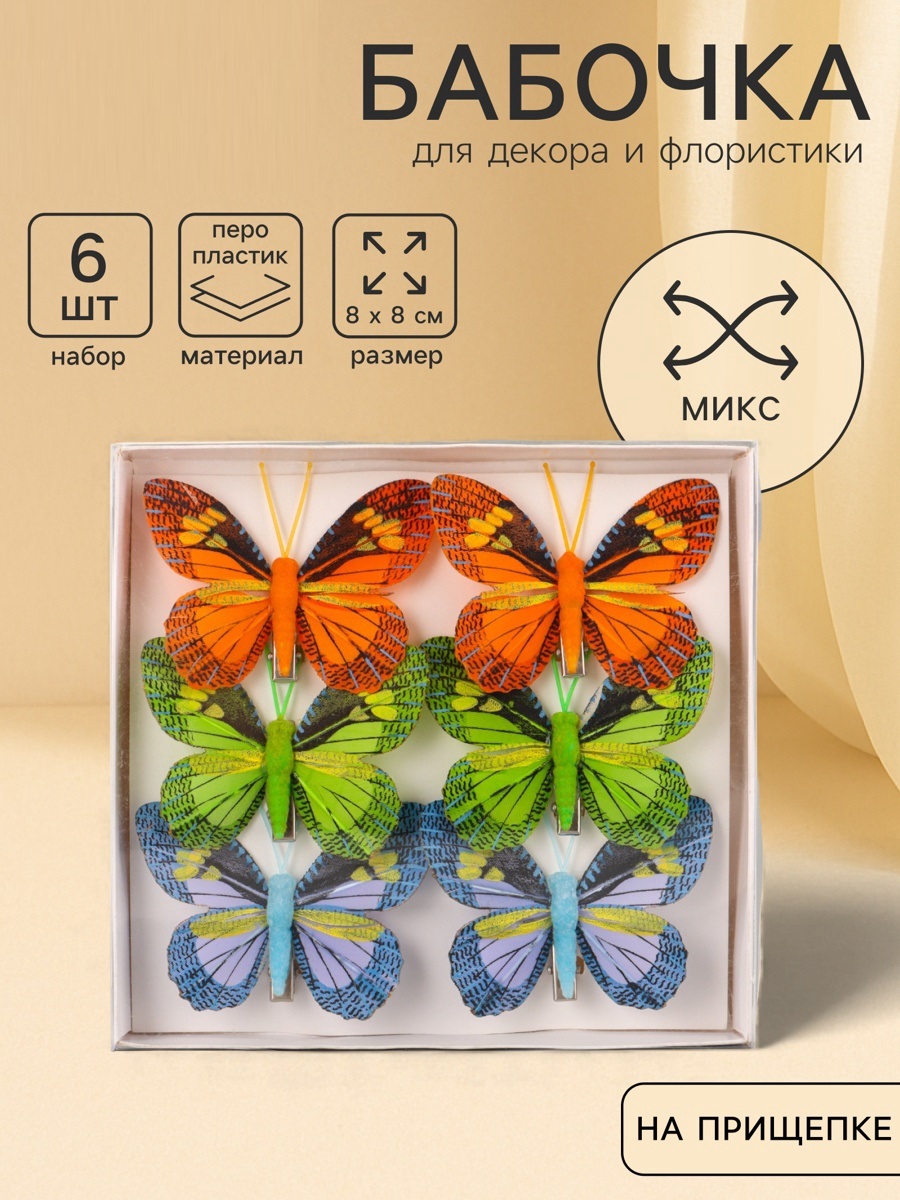 Декор на прищепке бабочка МИКС цена за 1шт! 4449360