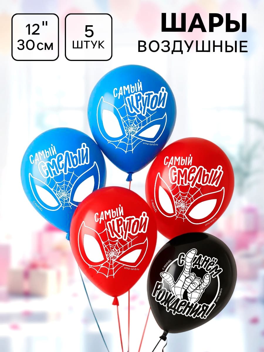 Шары воздушные латексные 12" «С днем рождения! Самый крутой», набор 5 шт, Супергерой 6830722