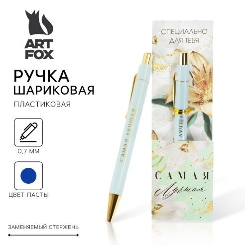 Ручка пластик "Самая лучшая", с тиснением на корпусе, синяя паста, 0,7 мм 7070928