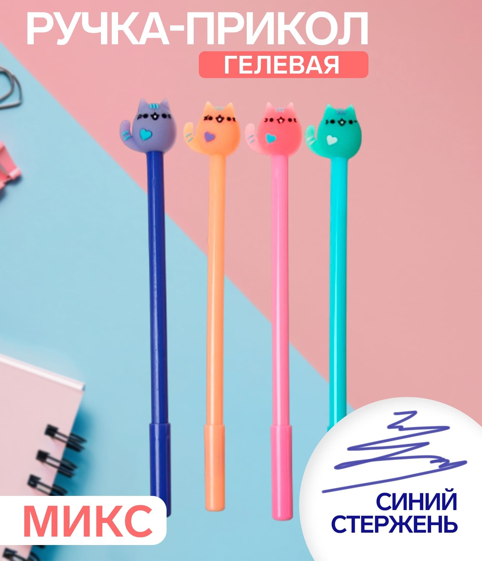 Ручка гелевая-прикол МИКС Кошка 7331822