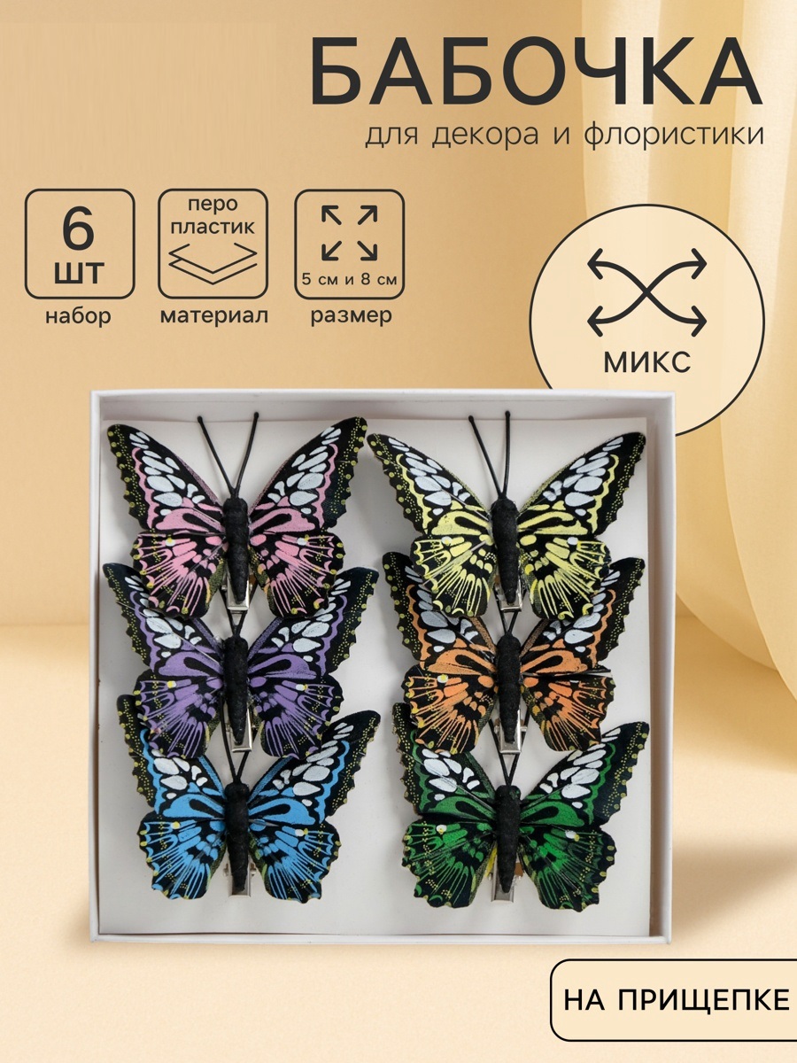 Декор на прищепке бабочка 5+8 см черный цена за 1шт! МИКС 7576155