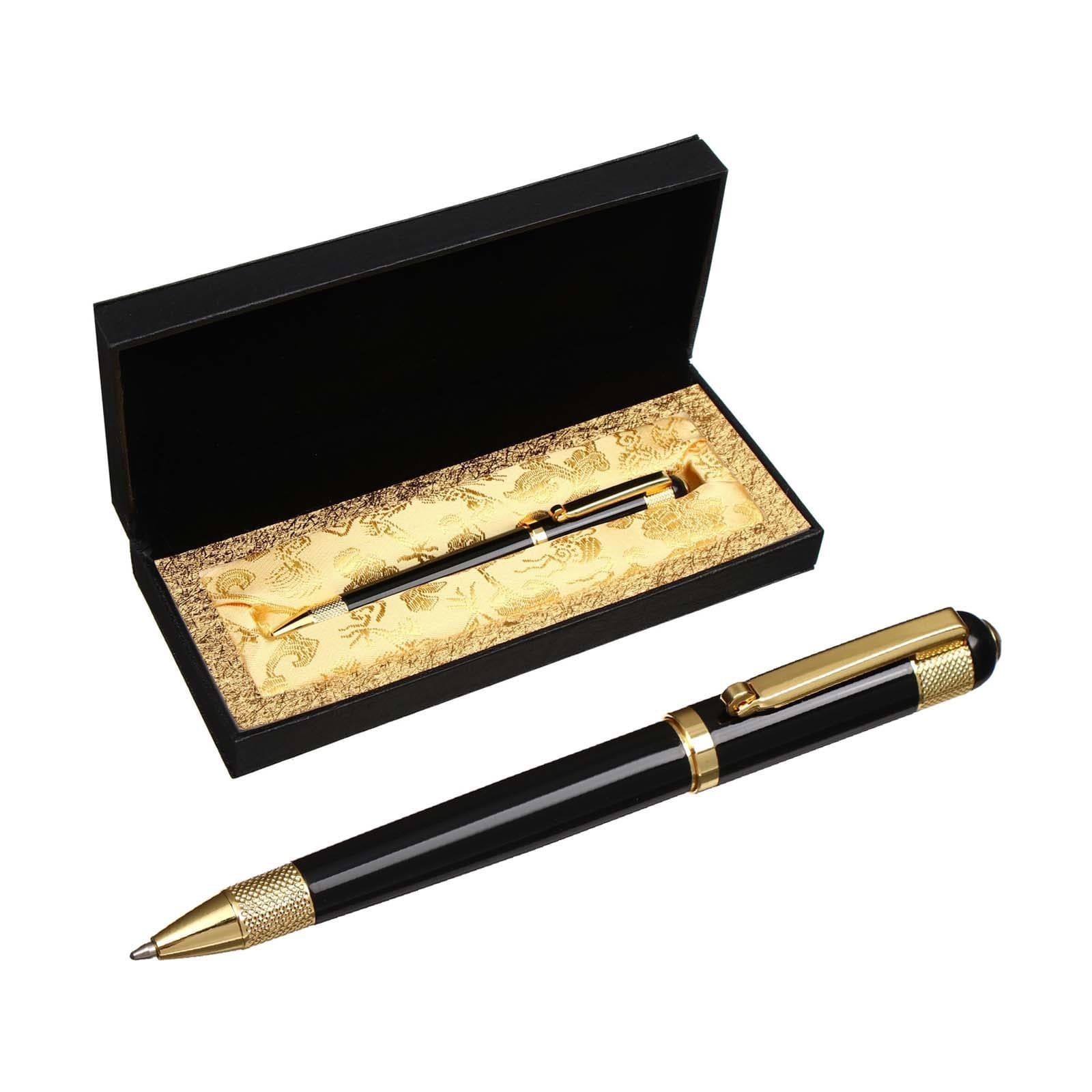 Ручка подарочная шариковая в кожзам футляре поворотная Вензура корпус черный с золотым 7584542