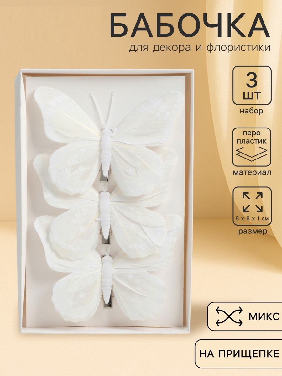 Декор на прищепке бабочка 12 см цена за 1шт! белая 7610096