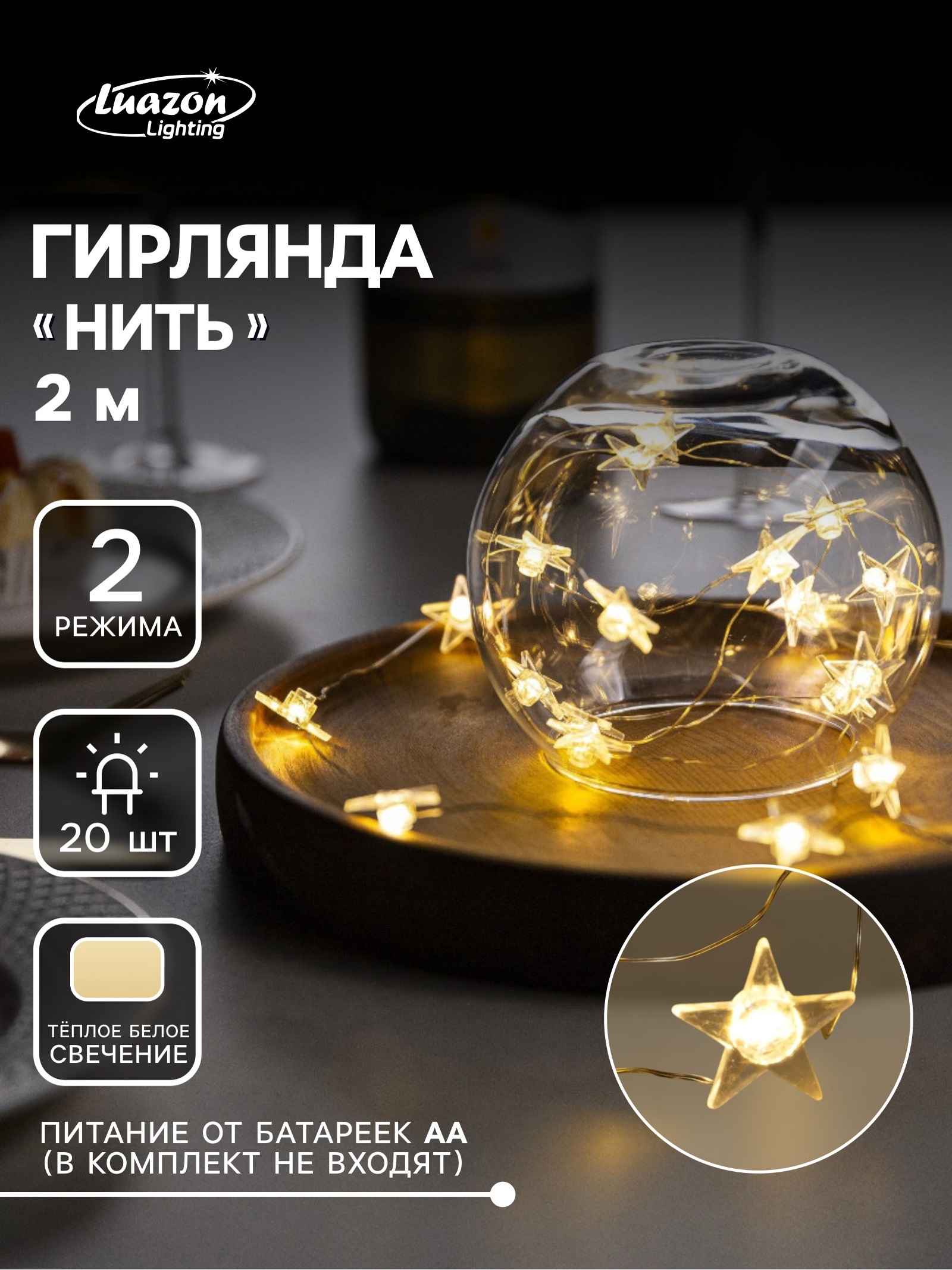 НИТЬ ROSA DECOR "Звезда", IP20, 2 м, Н.С. 20 LED, AAx2 (не в компл), 2 р., Т/БЕЛЫЙ 7867183
