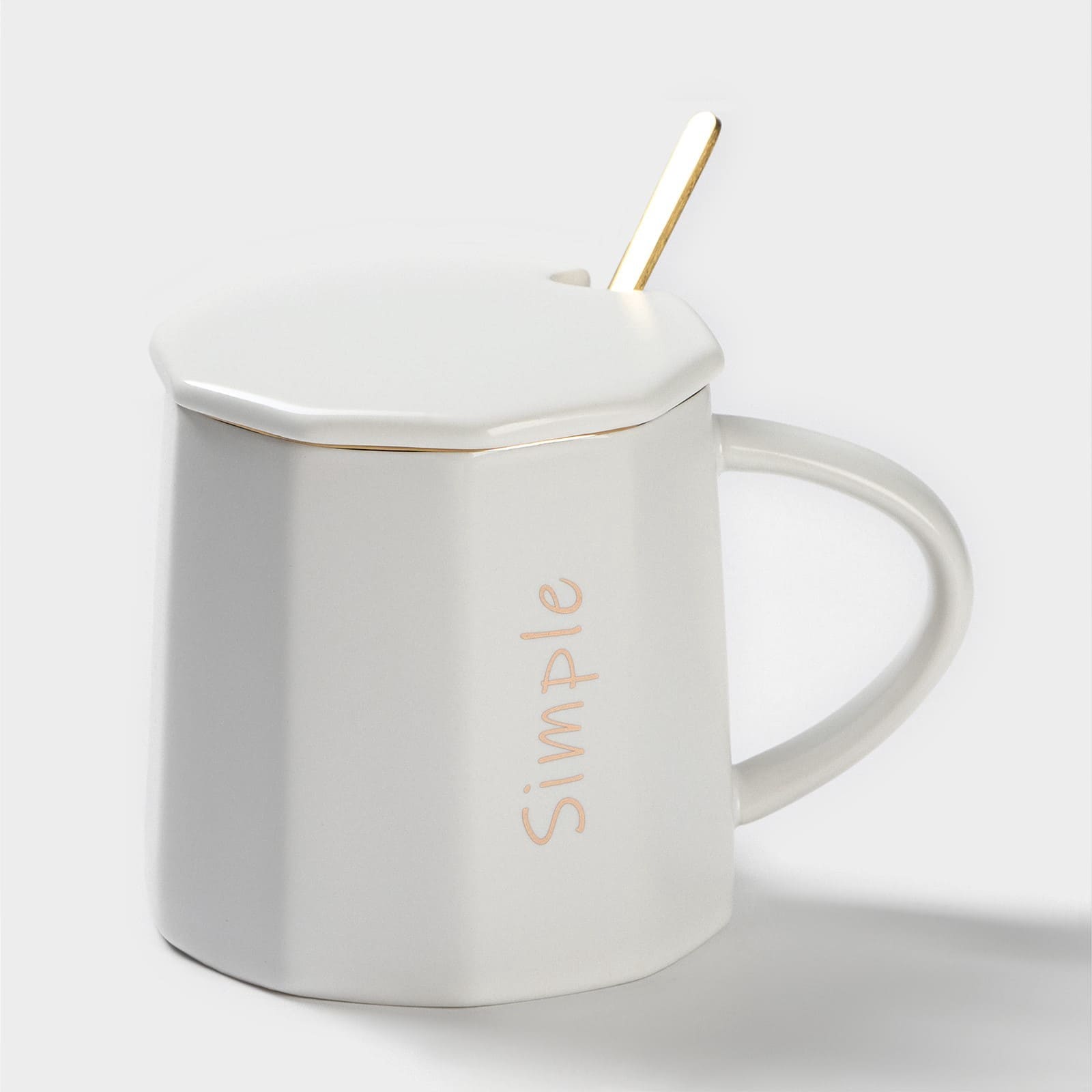 Кружка с керамической крышкой и ложкой "Simple" 350мл, 12,5х9х9см белая 9624066