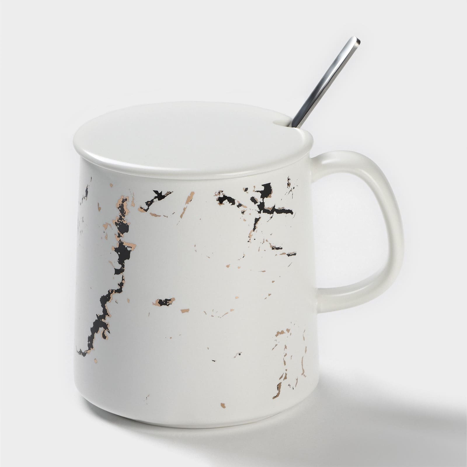 Кружка с керамической крышкой и ложкой "Белый мрамор" 350мл 9624091