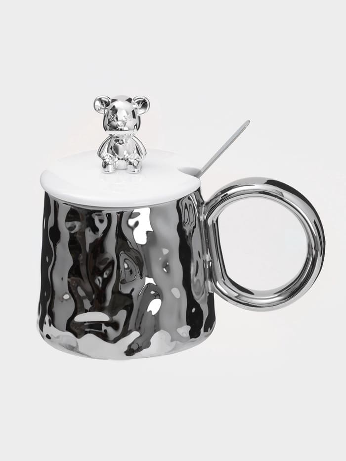 Кружка "Стильный мишка" 300 мл 15,5х9,8х8см с ложкой серебрянный 9626485