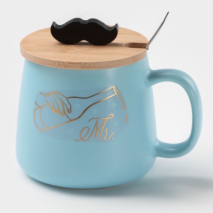 Кружка "Мистер" 380 мл, 12*9,5*8,5 бамбук крышка, ложка из нерж стали 9756524