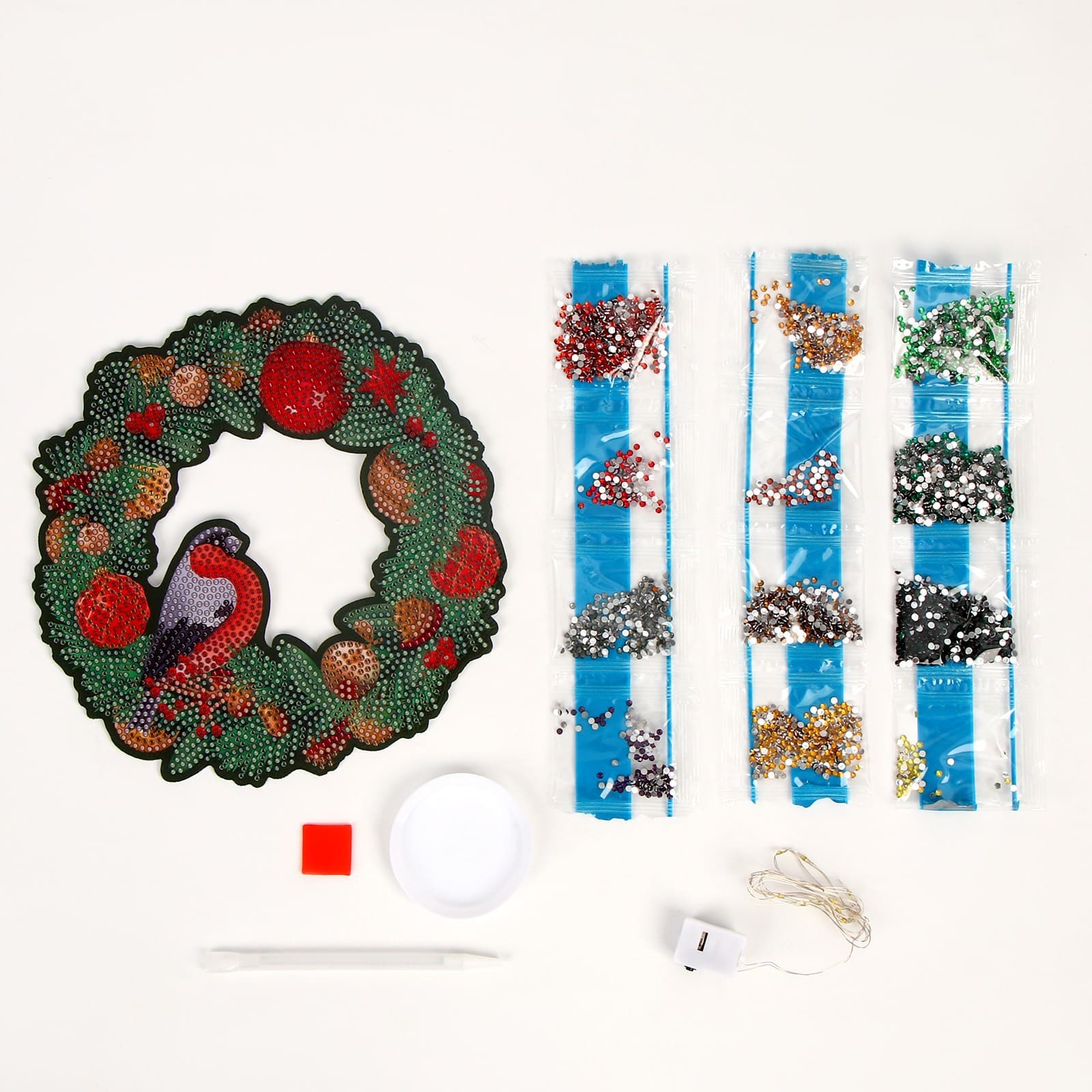 Алмазная мозаика. Новогодний венок «Снегирь»