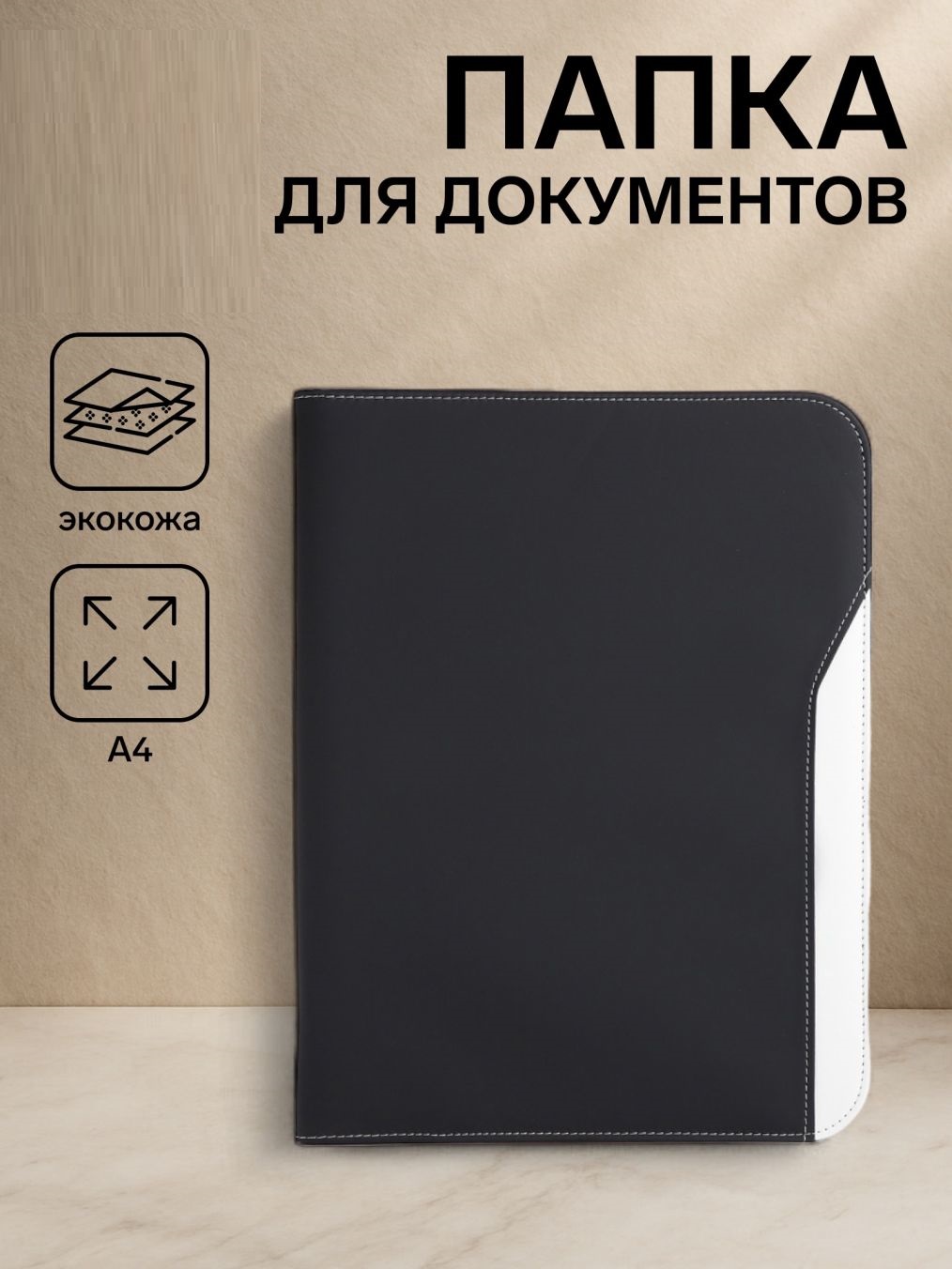Папка деловая А4, 25,5*2,5*34 см, отд на молнии, черный/белый 9875380