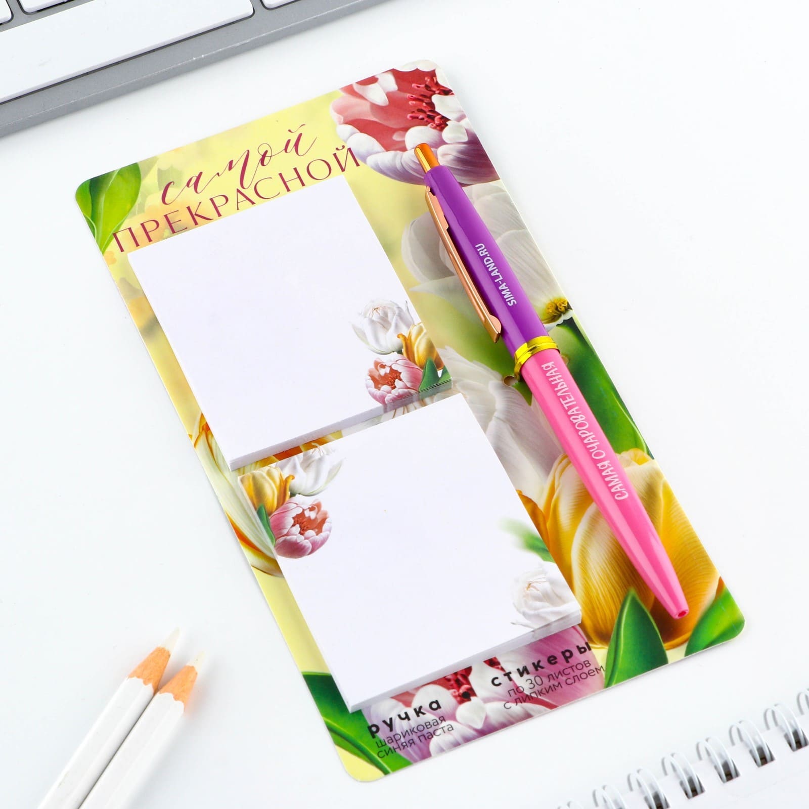 Набор стикеры и ручка "Самой прекрасной", 2 х 30 л, синяя паста 0.7 мм 9879898