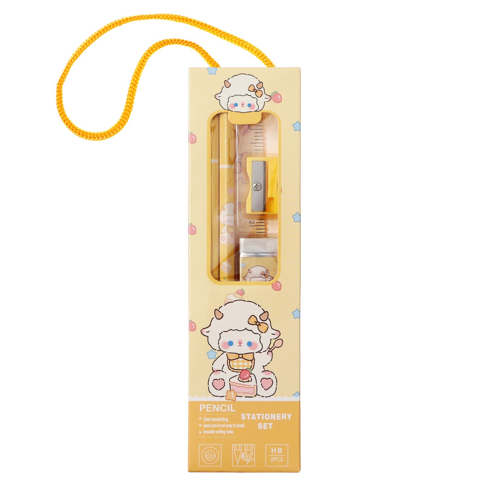 Набор канцелярский, 2 чернографитных карандаша, точилка, ластик, линейка, желтый 10212689