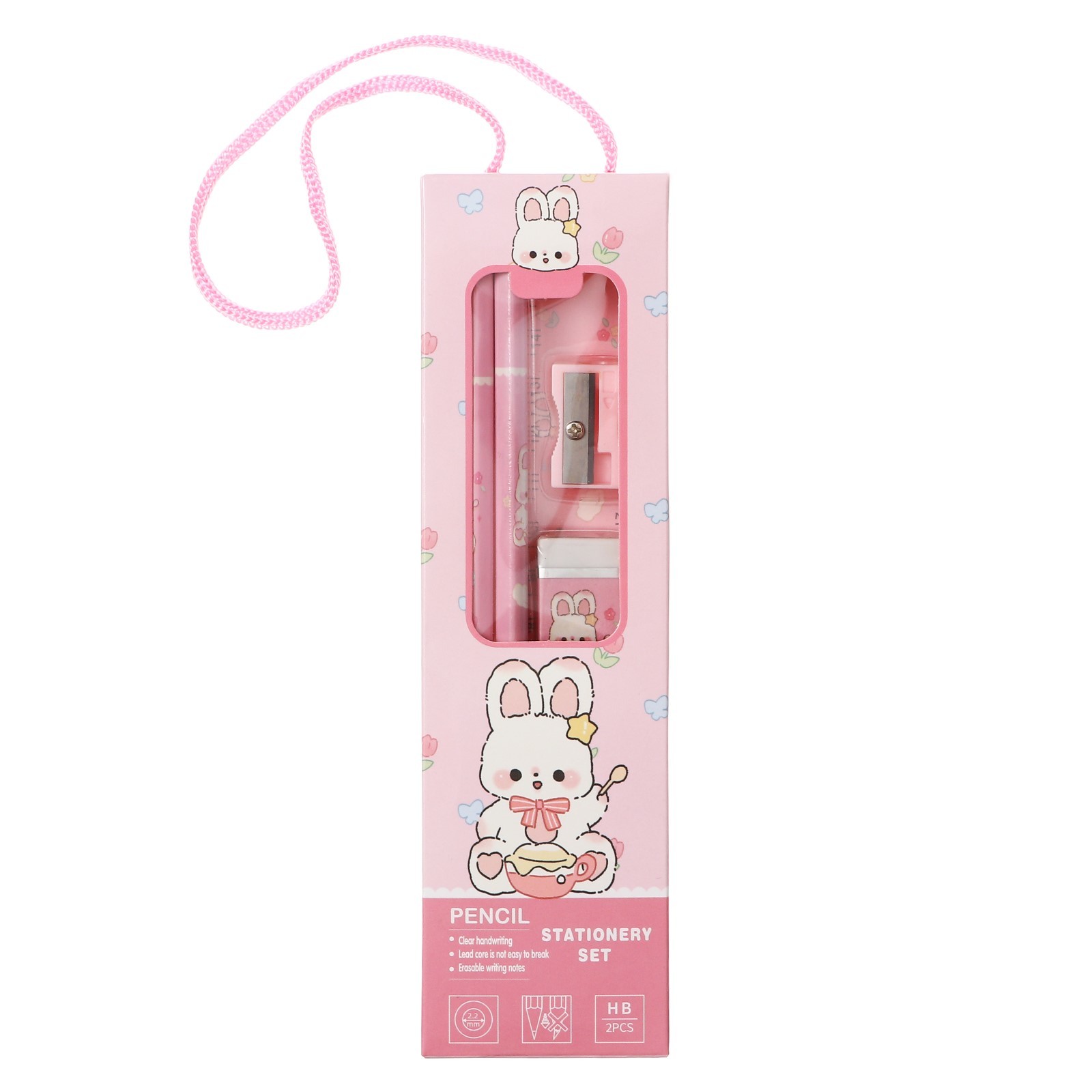 Набор канцелярский, 2 чернографитных карандаша, точилка, ластик, линейка, розовый 10212691