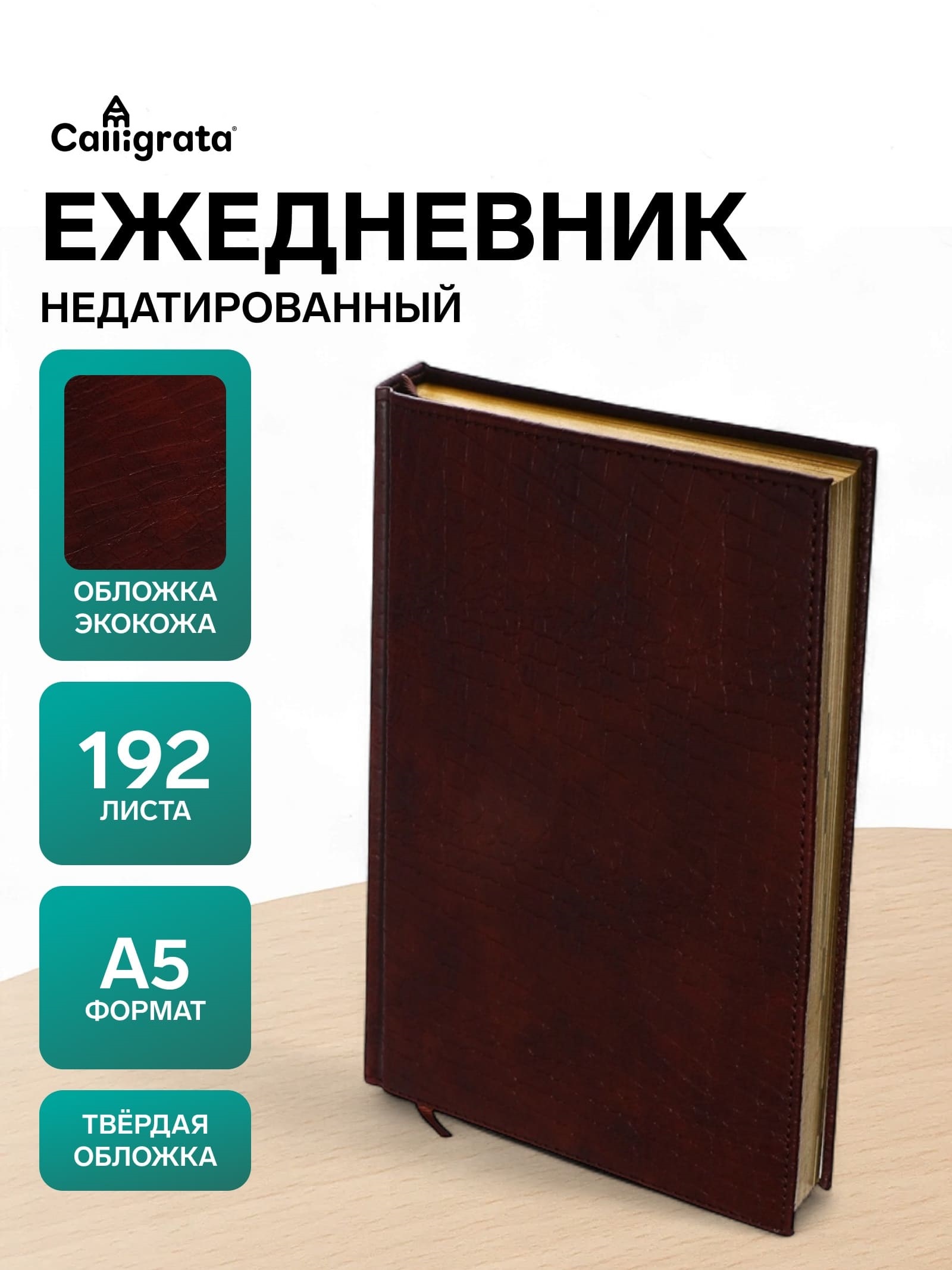 Ежедневник полудатированный, А5, 192л, лин, обл.кожзам, Крокодил коричневый 10536983