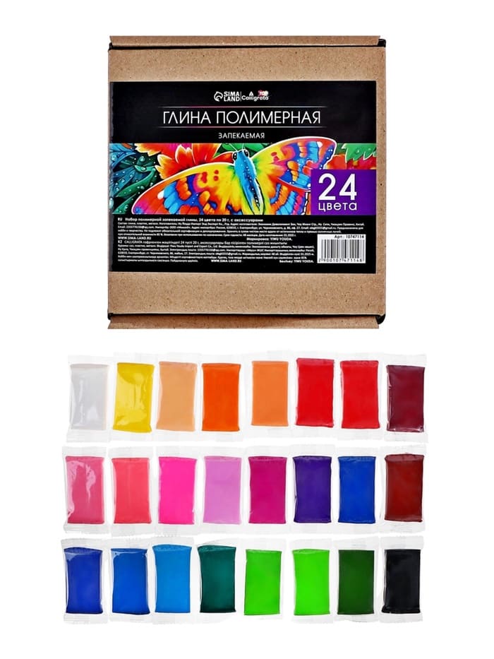 Набор глина полимерная запекаемая, 24 цвета по 20 г, с аксессуарами, в гофрокоробе 10747114