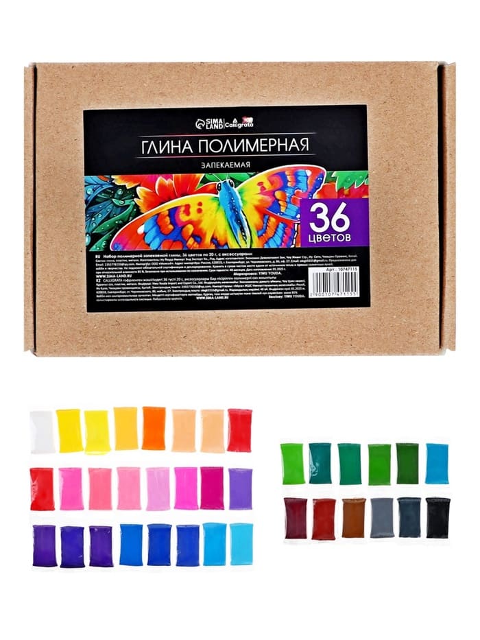 Набор глина полимерная запекаемая, 36 цветов по 20 г, с аксессуарами, в гофрокоробе 10747115