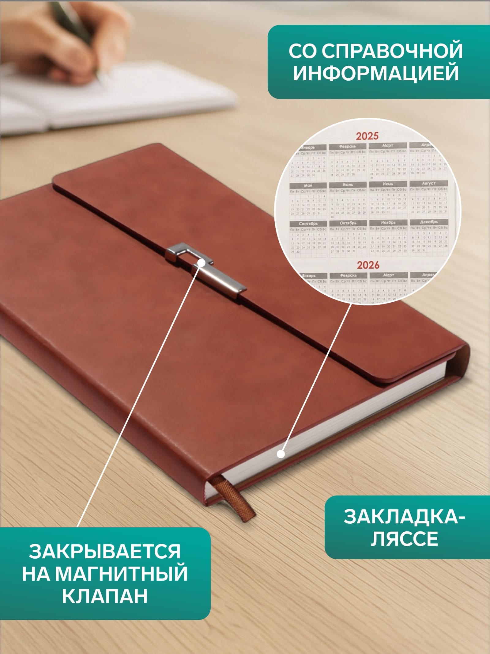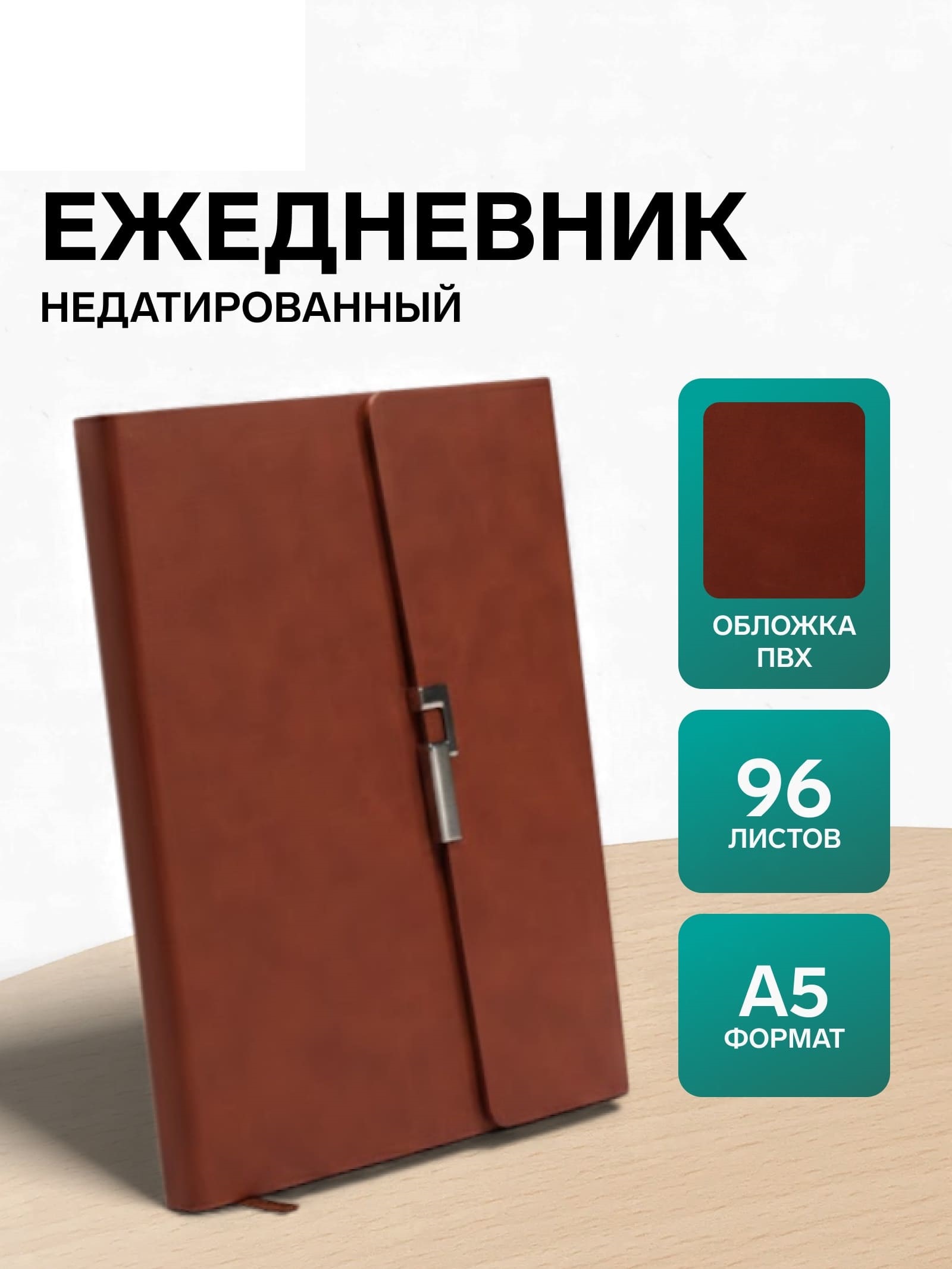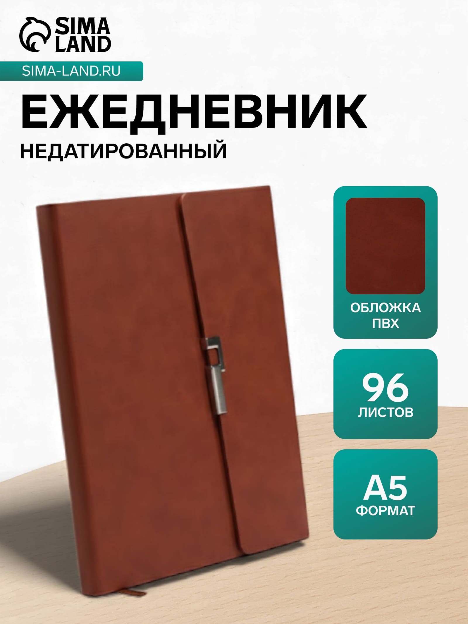Ежедневник недатированный формат А5, с клапаном, 96л, линия, пвх, Коричневый 10771062
