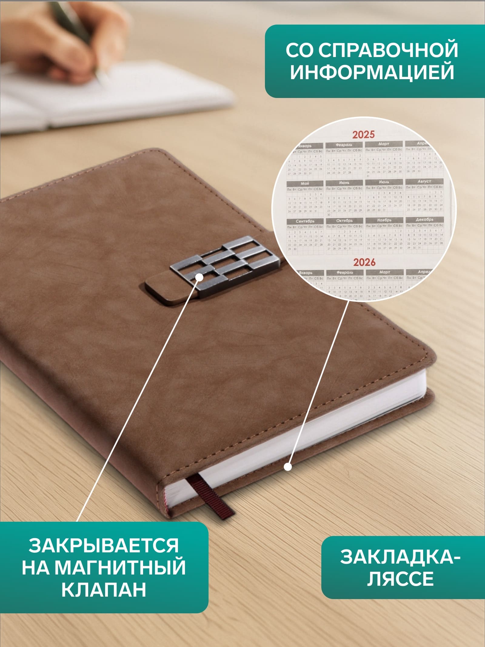 Ежедневник недатированный формат А5, с хлястиком, 112л, линия, пвх, Коричневый 10771063