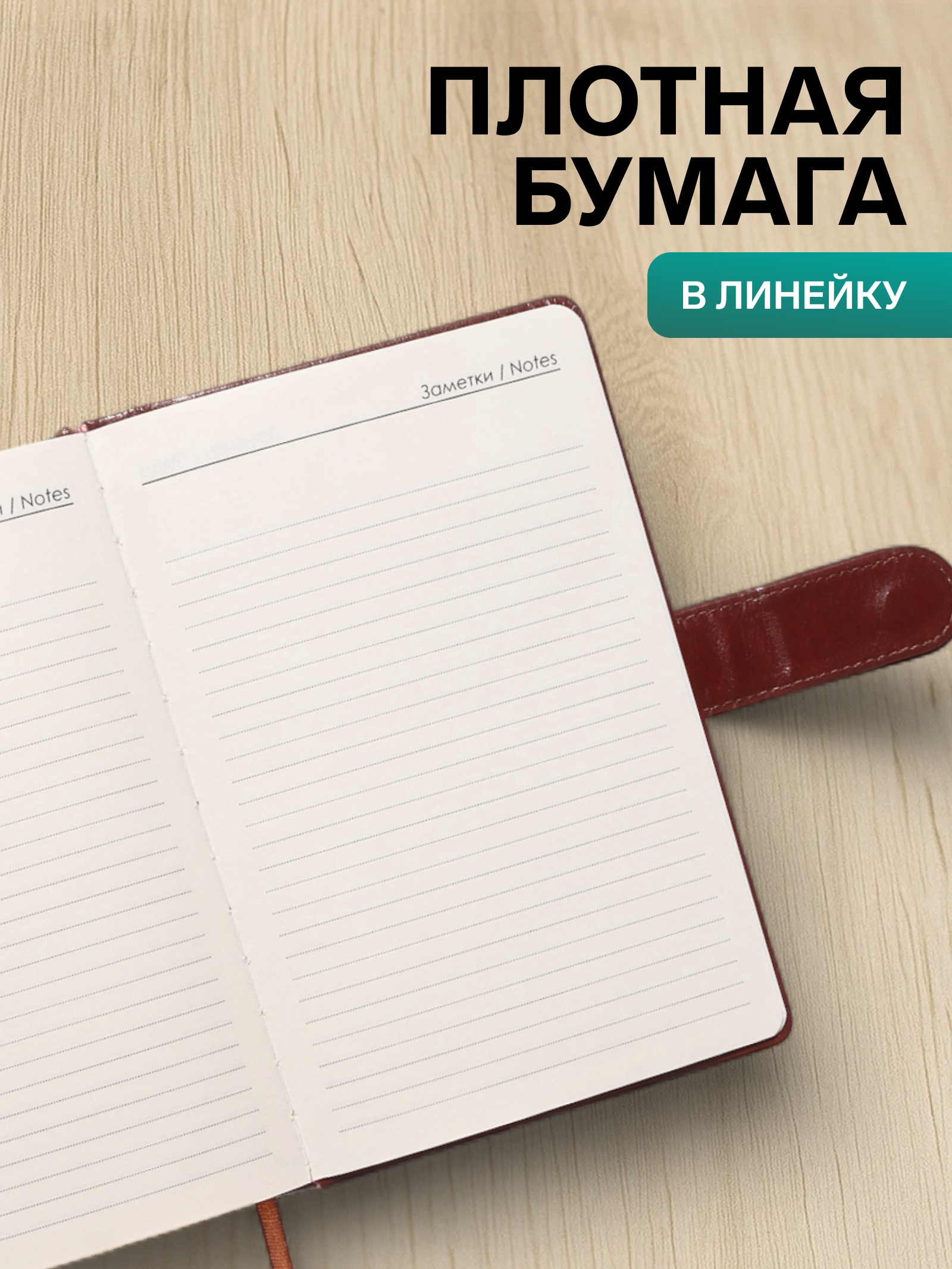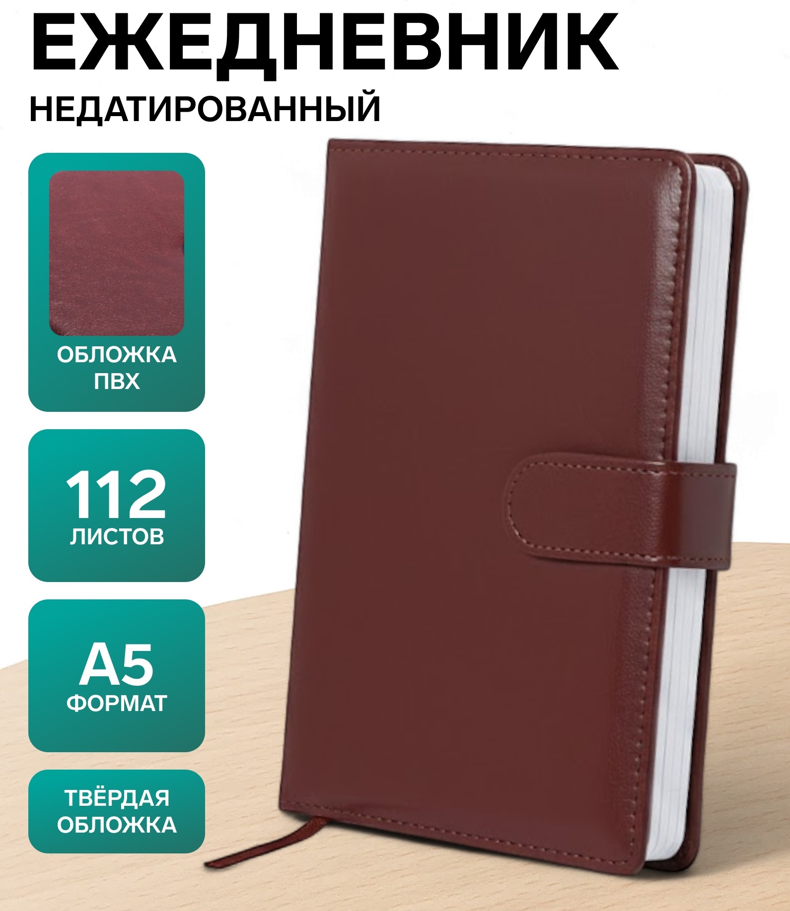 Ежедневник недатированный формат А5, с хлястиком, 112л, линия, пвх, Классика Коричневый 10771083