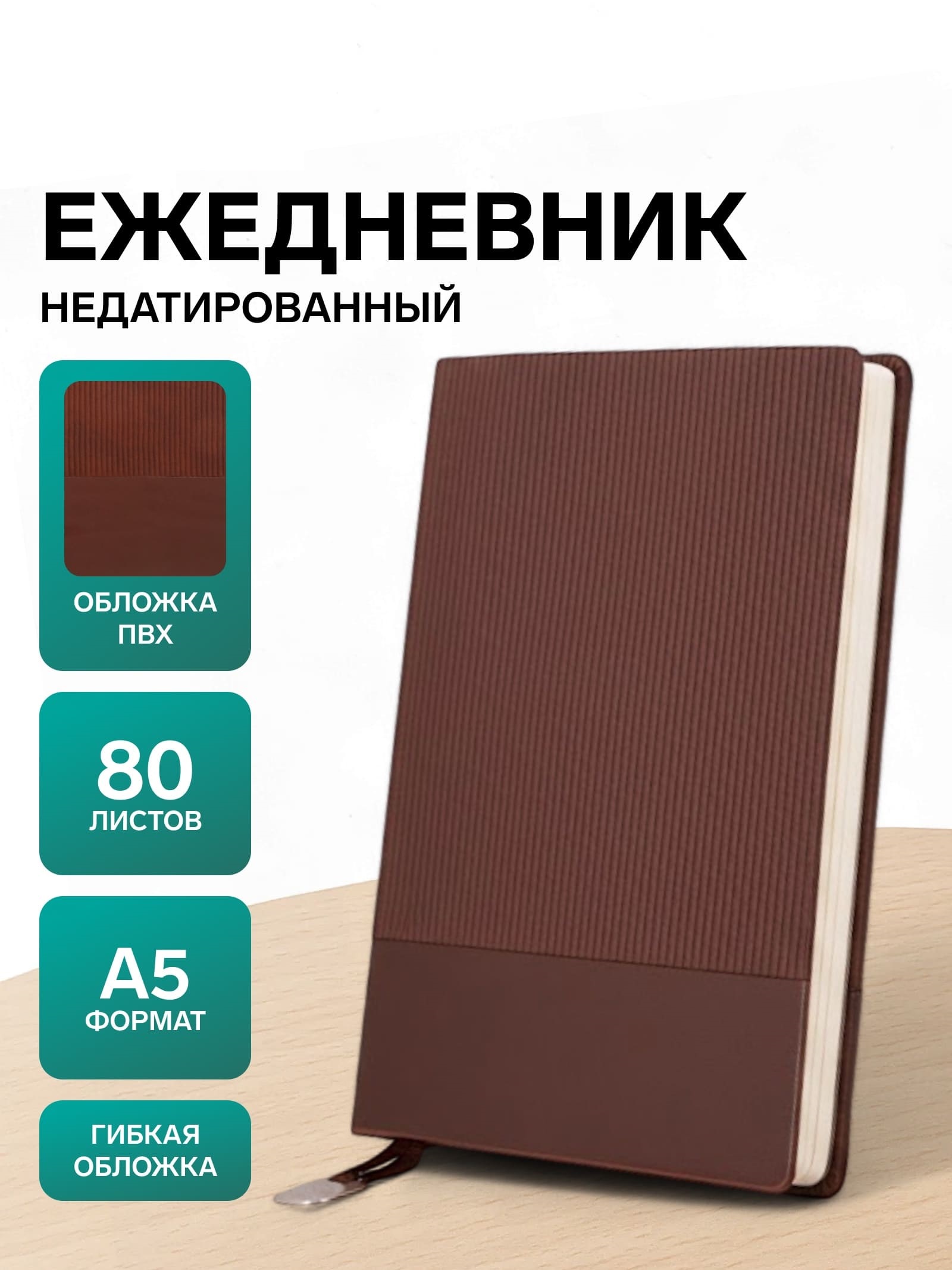 Ежедневник недатированный формат А5, 80л, линия, с ручкой, подар коробка, Коричневый 10771091