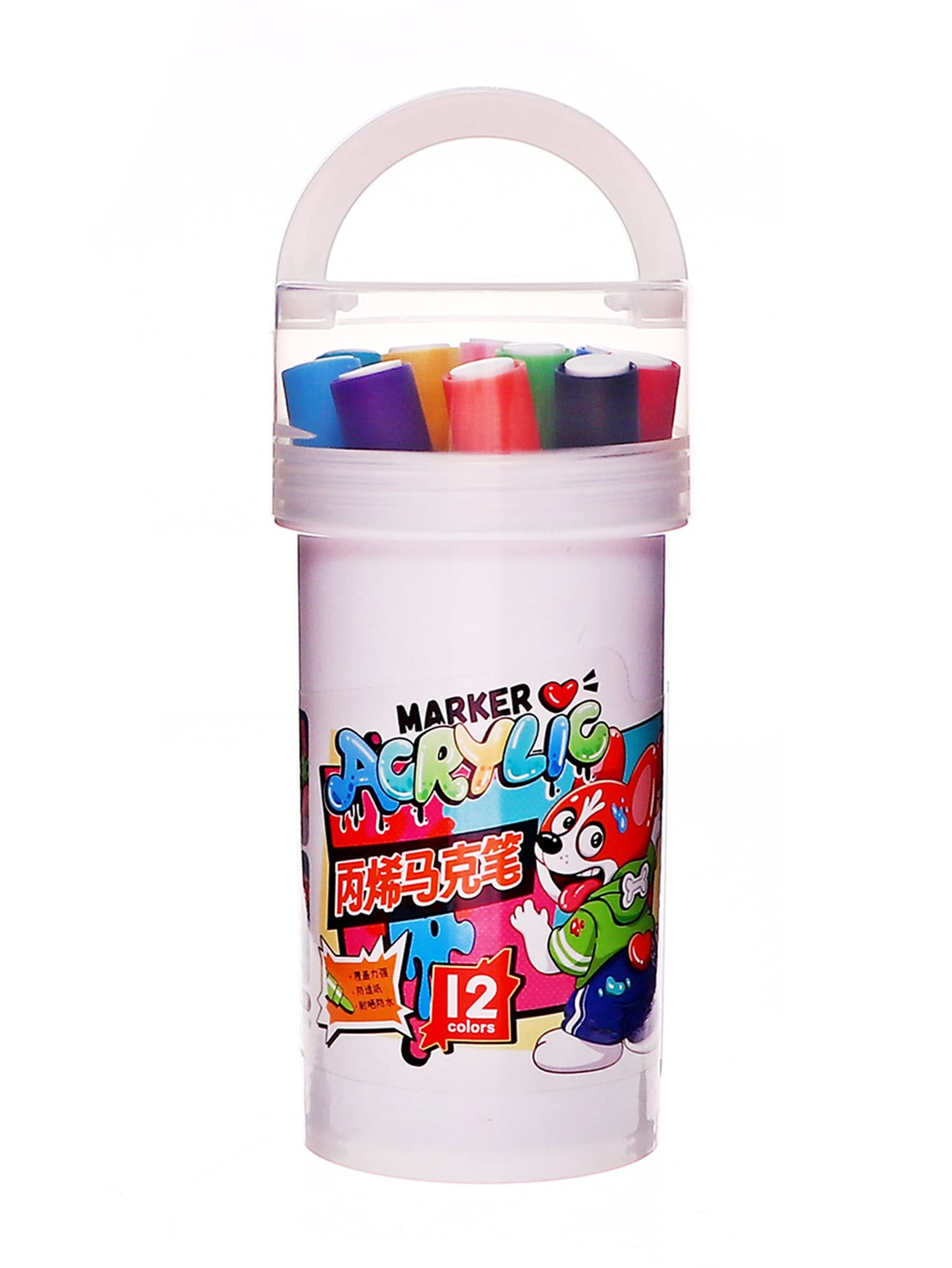Набор акриловых маркеров 12 цветов в пластиковом тубусе 10843622